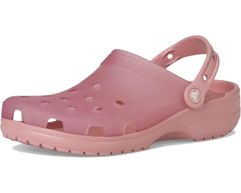 Crocs™ Classic Frosted Clog is an iconic clog that started a comfort revolution around the world! The irreverent go-to comfort shoe that you're sure to fall deeper in love with day after day. It offers lightweight iconic crocs comfort , a color for every personality, and an ongoing invitation to be comfortable in your own shoes. Crafted from EVA upper, and insole, featuring round toe, frosted matte finish adds a stylish touch with subtle color and translucence, provides lightweight, flexible, 360-degree support, and ventilation ports enhance breathability and shed water and debris for all-day comfort.